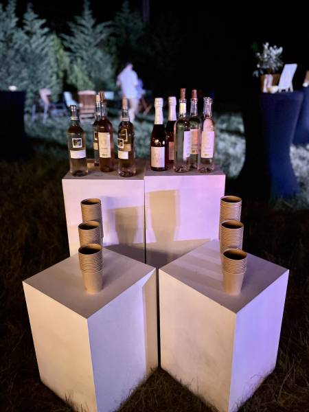 L’eau plate et l’eau pétillante sont tout aussi essentielles. Entre deux danses, sous la chaleur d’une nuit d’été azuréenne, vos invités auront besoin de s’hydrater. Disposez des bouteilles d’eau en libre accès directement sur le bar et, idéalement, sur quelques points stratégiques autour de la piste de danse. C’est un détail qui fait toute la différence pour le confort de vos convives.